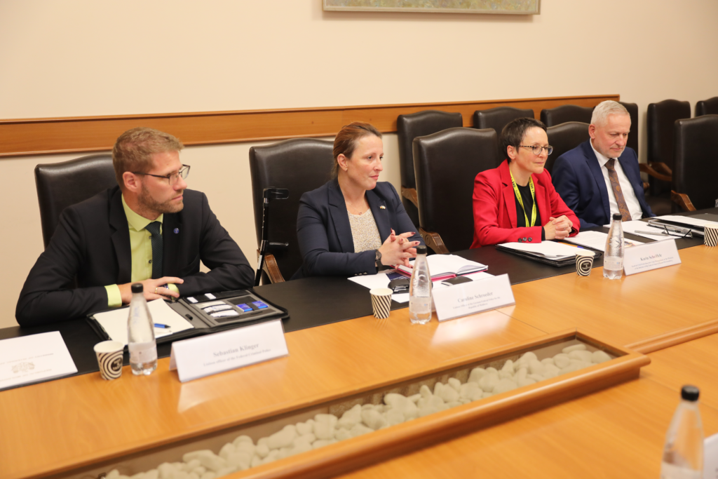 Chișinău, 2 octombrie 2024 – Secretarii de stat, Mariana Lucreteanu și Andrei Cecoltan, s-au întâlnit cu Secretarul de stat al Ministerului de Interne al landului federal Baden-Württemberg, Thomas Blenke, pentru a discuta extinderea cooperării polițienești cît și inițierea colaborării în domeniul situațiilor de urgență și protecție civilă. Subiectul principal al discuțiilor a vizat oportunitățile de sprijin pe care Ministerul de Interne, Digitalizare și Administrație Localǎ din Baden-Württemberg le-ar putea oferi Republicii Moldova în domeniile de activitate ale Ministerului Afacerilor Interne (MAI).